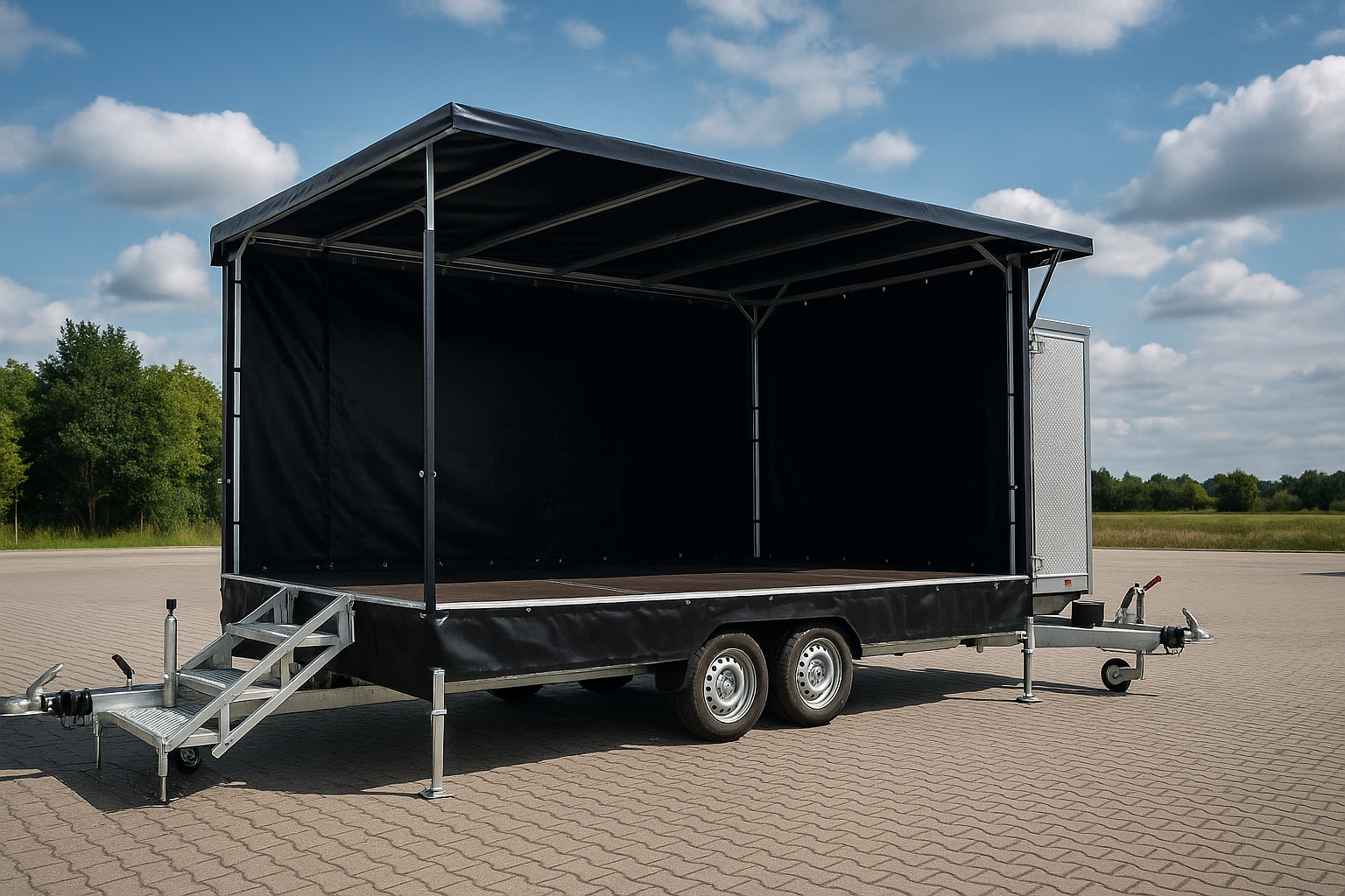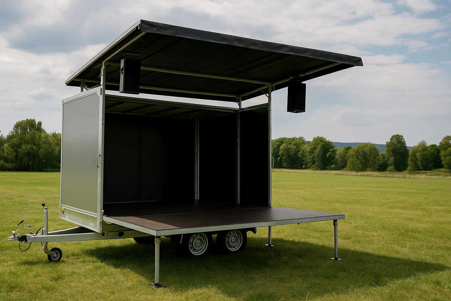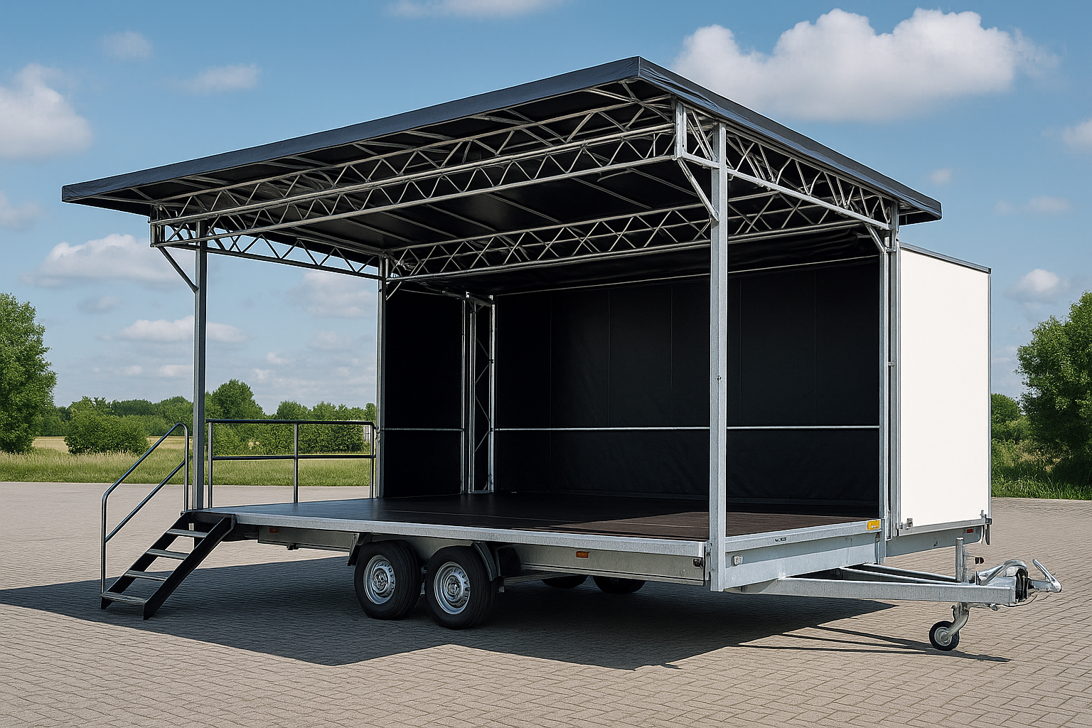 Przyczepa koncertowa PRO to najbardziej rozbudowane i prestiżowe rozwiązanie dla organizatorów dużych wydarzeń muzycznych, festiwali plenerowych, koncertów masowych i tras artystycznych. Zaprojektowana z myślą o intensywnym użytkowaniu i wymagających warunkach scenicznych, zapewnia dużą powierzchnię sceniczną, zintegrowane systemy podnoszenia, solidne zadaszenie oraz pełną gotowość do montażu profesjonalnego nagłośnienia, oświetlenia i multimediów.